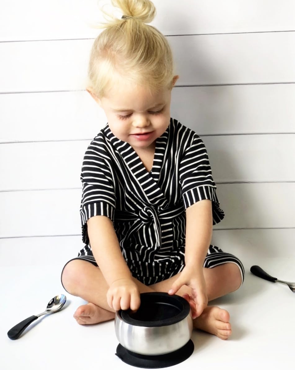 - Combine our toddler bibs and our spoons with wide scoops for a mess-free, enjoyable feeding experience. Our utensils make independent eating an easy task for your baby. Also available in Bamboo.