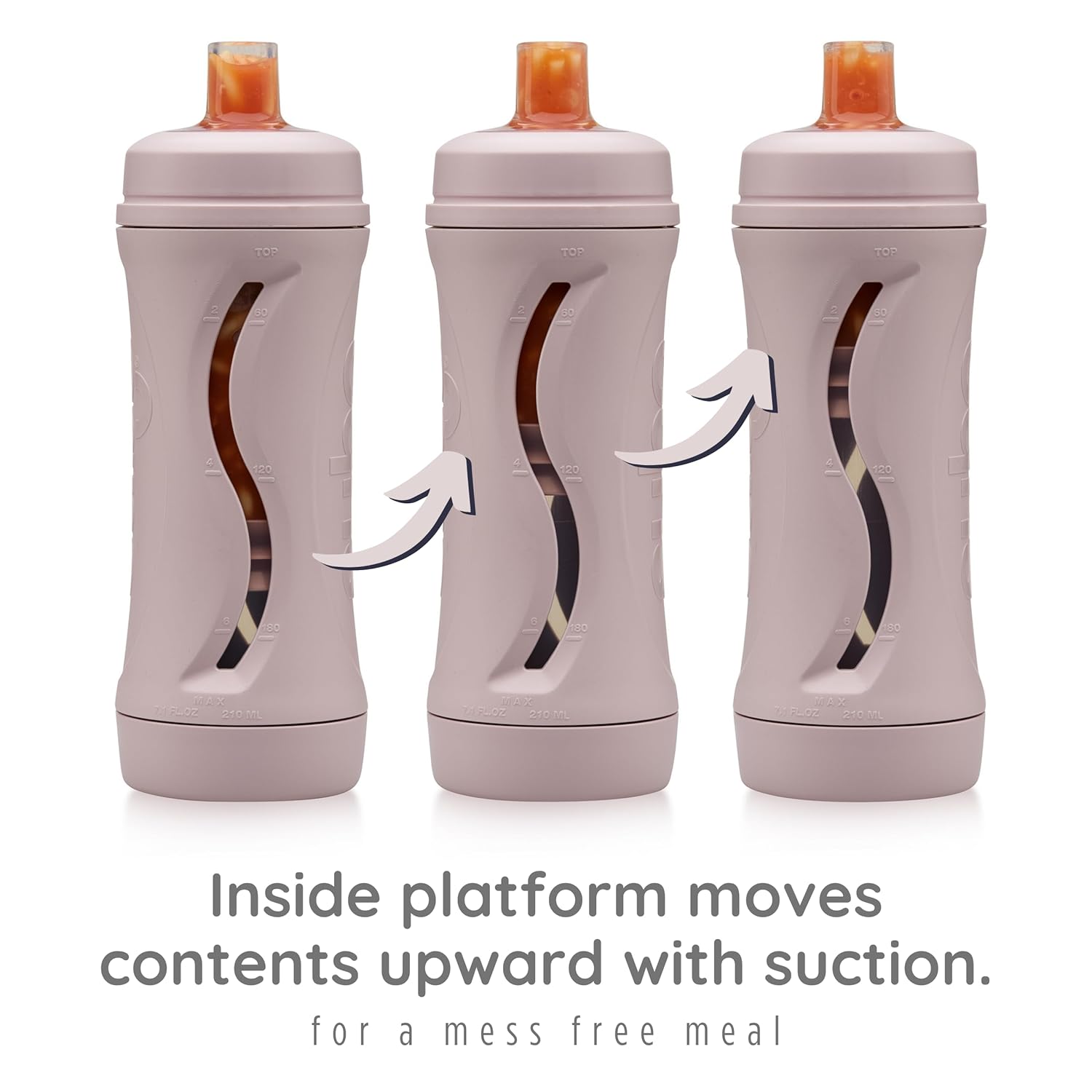 - AUTOMATIC PLATFORM: The Subo food bottle is the perfect feeding solution for young children, starting at just 4 months old. This bottle allows children to easily sip and enjoy their food through a soft silicone spout. The platform inside the bottle automatically moves up as the child consumes the food, ensuring they get every last bit without any struggle. This makes mealtime a fun and stress-free. It comes with an original 12mm (1/2 inch) spout and a 5mm (1/4 inch) straw spout.