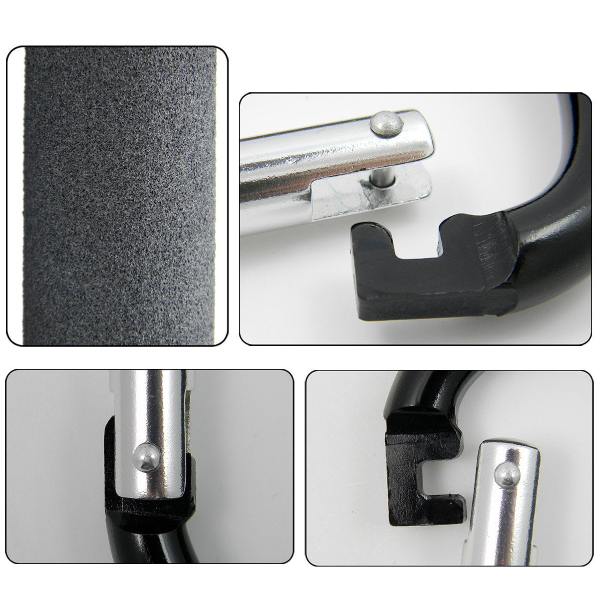 - 🌼DURABLE AND STRONG + FOAM CUSHION HANDLE: Made of durable, ultralight aircraft grade nano aluminum which means they will last forever. Each hook can support a giant 35 pounds of weight, that's over double the limit other competing brands. With a foam grip, locks the stroller hooks in place. It will not slip or fall, and provides a comfortable grip for you. For safety, when using stroller hooks to hang stuff on the stroller, make sure that the weight is under the load bearing of the stroller.