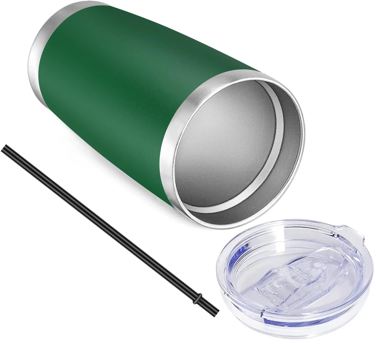 VEGOND 20oz Tumbler with Lid and Straw Stainless Steel Tumbler Cup Bulk Vacuum Insulated Double Wall Travel Coffee Mug Powder Coated Coffee Cup(Powder Green 12 Pack)