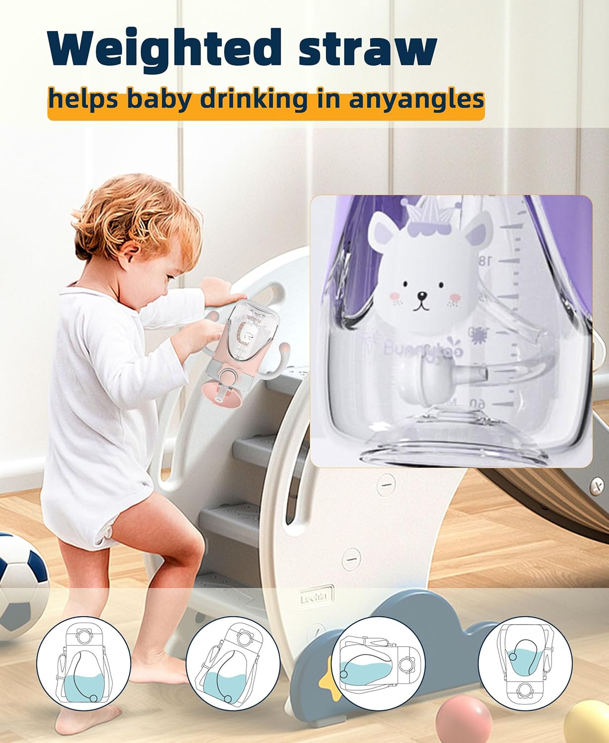 - Self-Feeding Support with Weighted Straw Design: The 360° Gravity Straw adjusts to every angle, helping babies drink comfortably in strollers, car seats, or play areas. Ergonomic handles provide a secure grip, and the 8oz (240ml) capacity reduces frequent refills. Parents appreciate the reliable leak-resistant performance for mess-free hydration.