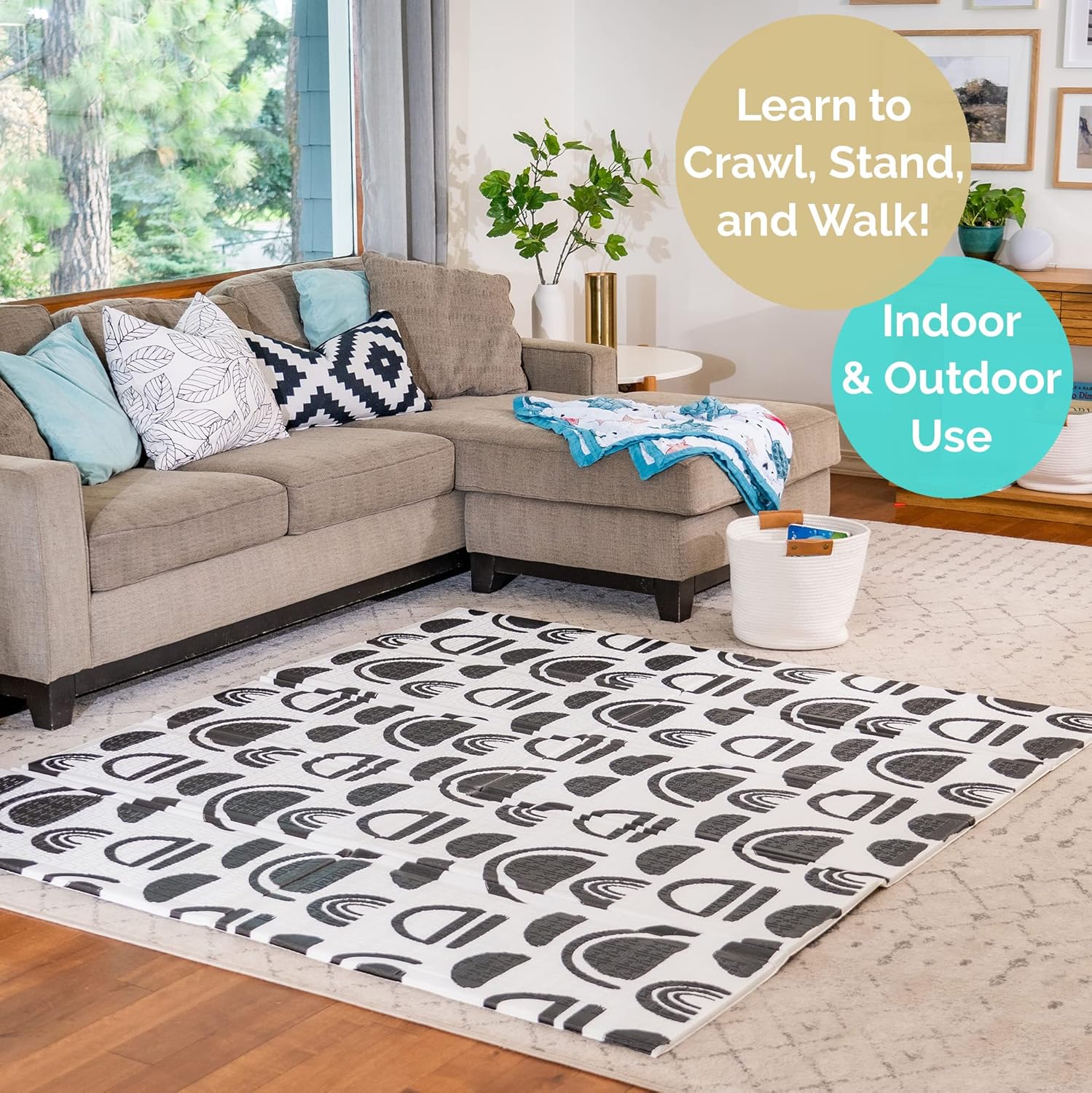 - Space To Play - This extra large baby play mat clocks in at 77 inches by 70 inches with a thick 0.6 in. padding, giving your little one plenty of space to crawl, play, or take a nap after they’re tuckered out