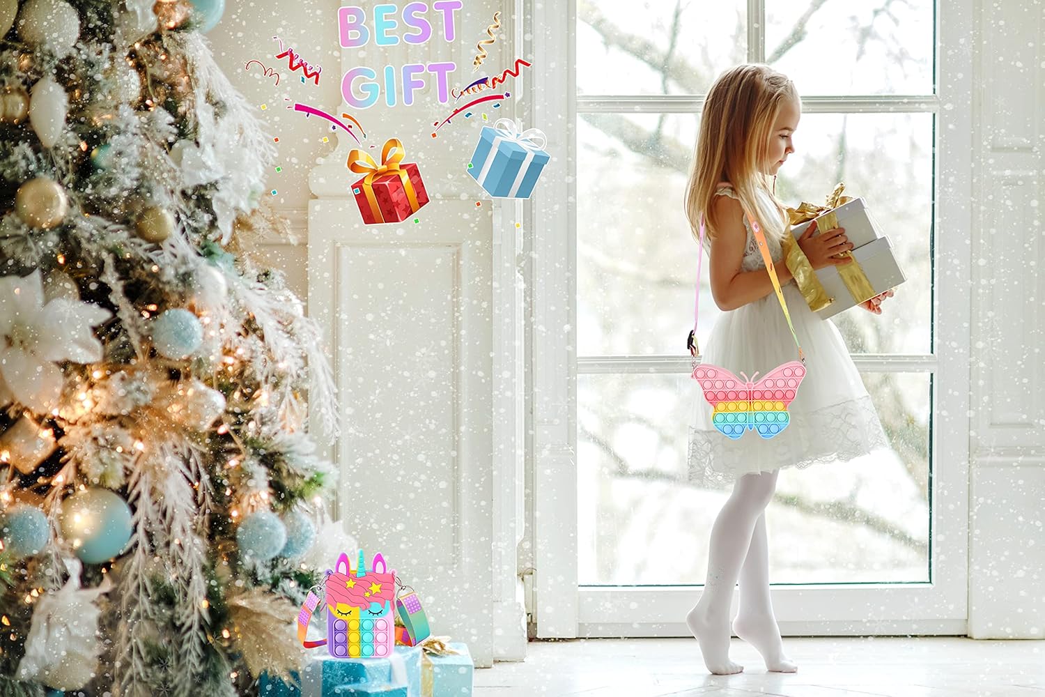 Aucma 2 Pack Purse for Girls Toys Wallet Messenger Crossbody Handbag Bag Kid Birthday Valentines Gift 2022 Stocking Stuffers Christmas Xmas Stuff