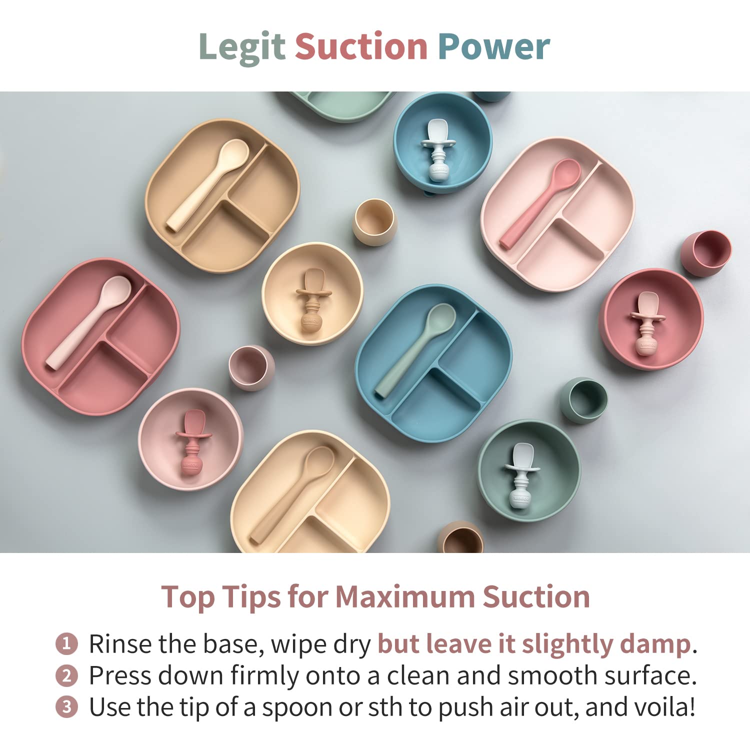 - Strong Suction Power - Our Plate and Bowl stick firmly to smooth surfaces, thanks to a larger Suction Base that creates the ultimate hold. Plus, our divided plate features an impressive height of 1.9β³ which is approx 35% more than average!