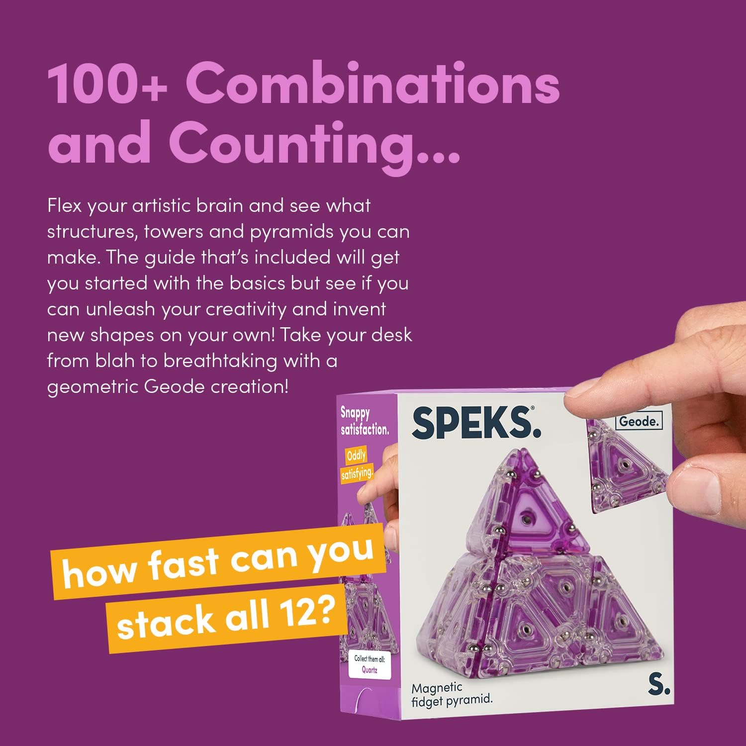 Speks Geode Pyramid 12-Piece Building Set - Quartz - Fun Desk Toy for Adults