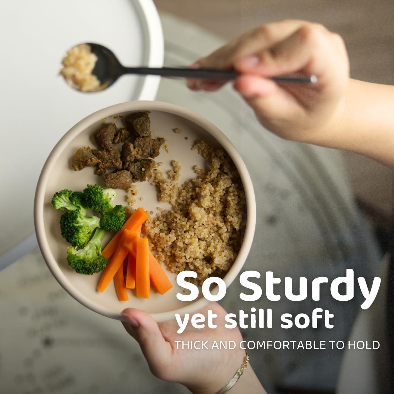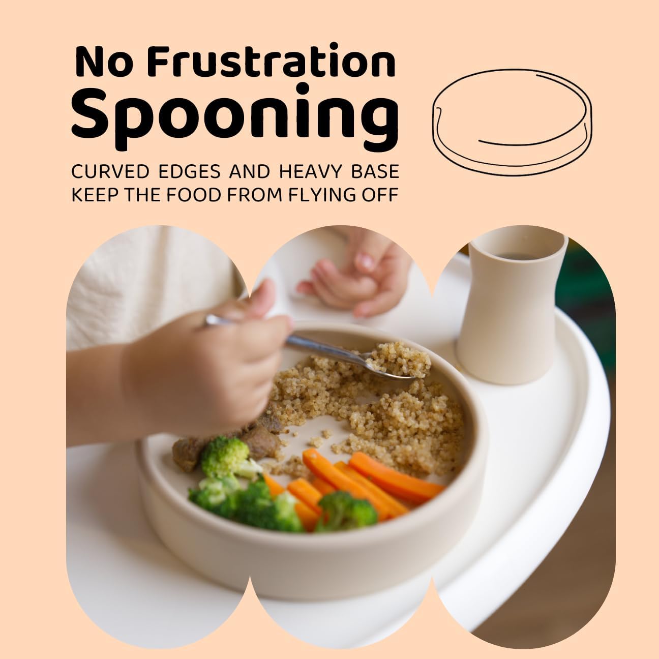 • A Nurturing Mealtime Experience - We designed our baby-led weaning silicone plates for kids with your comfort and convenience in mind. It doesn't feature saggy mats or suction cups, allowing you to comfortably hold these toddler plates while feeding your baby when they need your support.