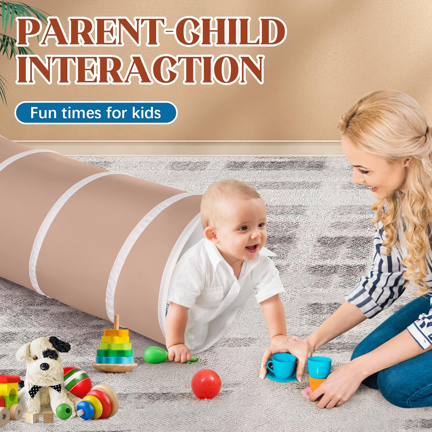 Kids Play Tunnel Tent for Toddlers, Pop Up Crawl Tunnel Toy for Baby or Pet with Neutral Color, Collapsible Gift for Boy and Girl Play Tunnel Indoor and Outdoor Game (Brown Tunnel)