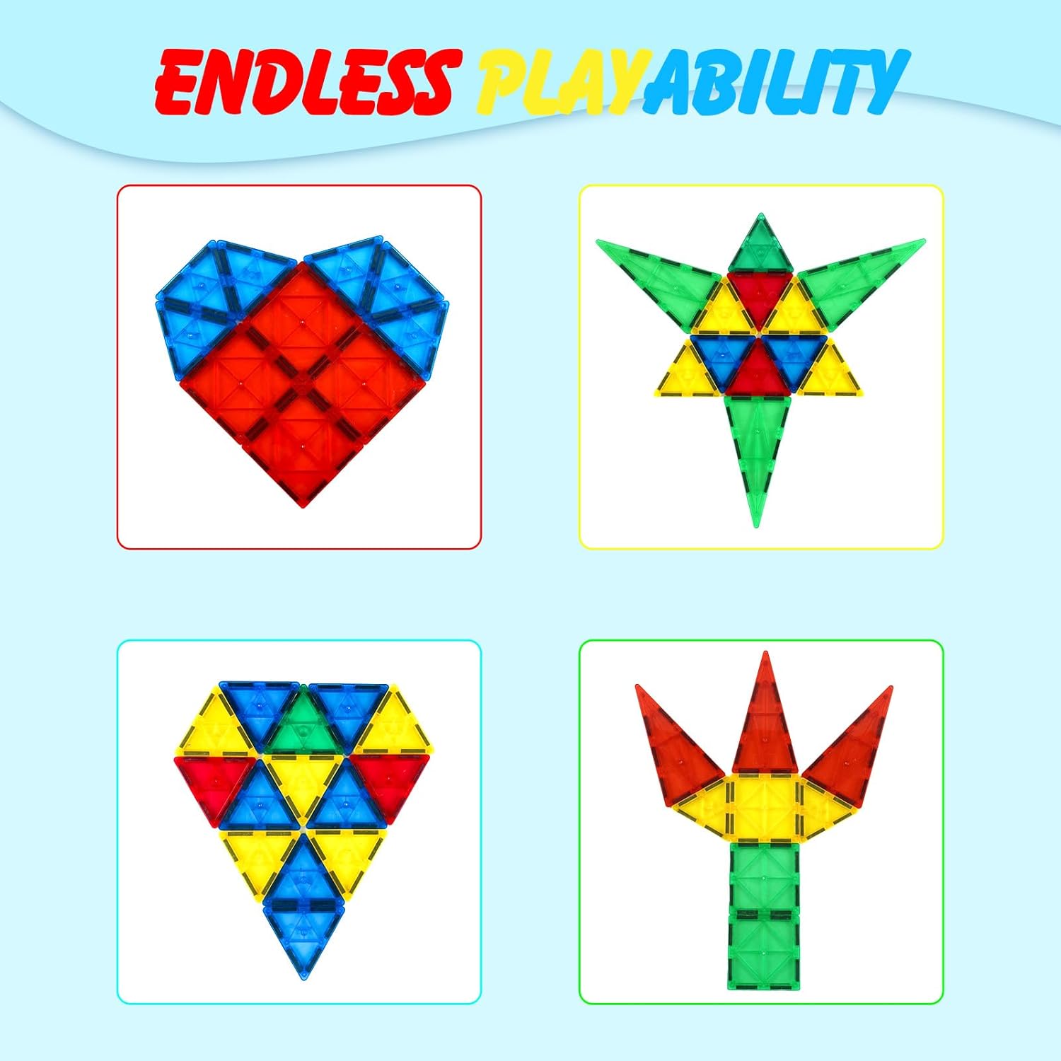 - Safe and Durability: Gemmicc Magnetic tiles are made of Non-Toxic and durable ABS plastic, the round corner design won't hurt your children's little hands, Our factory adopt the advanced ultrasonic welding technology to avoid any flaw, so there is no need to worry about your kids' safety, just release their endless creativity and free their imagination