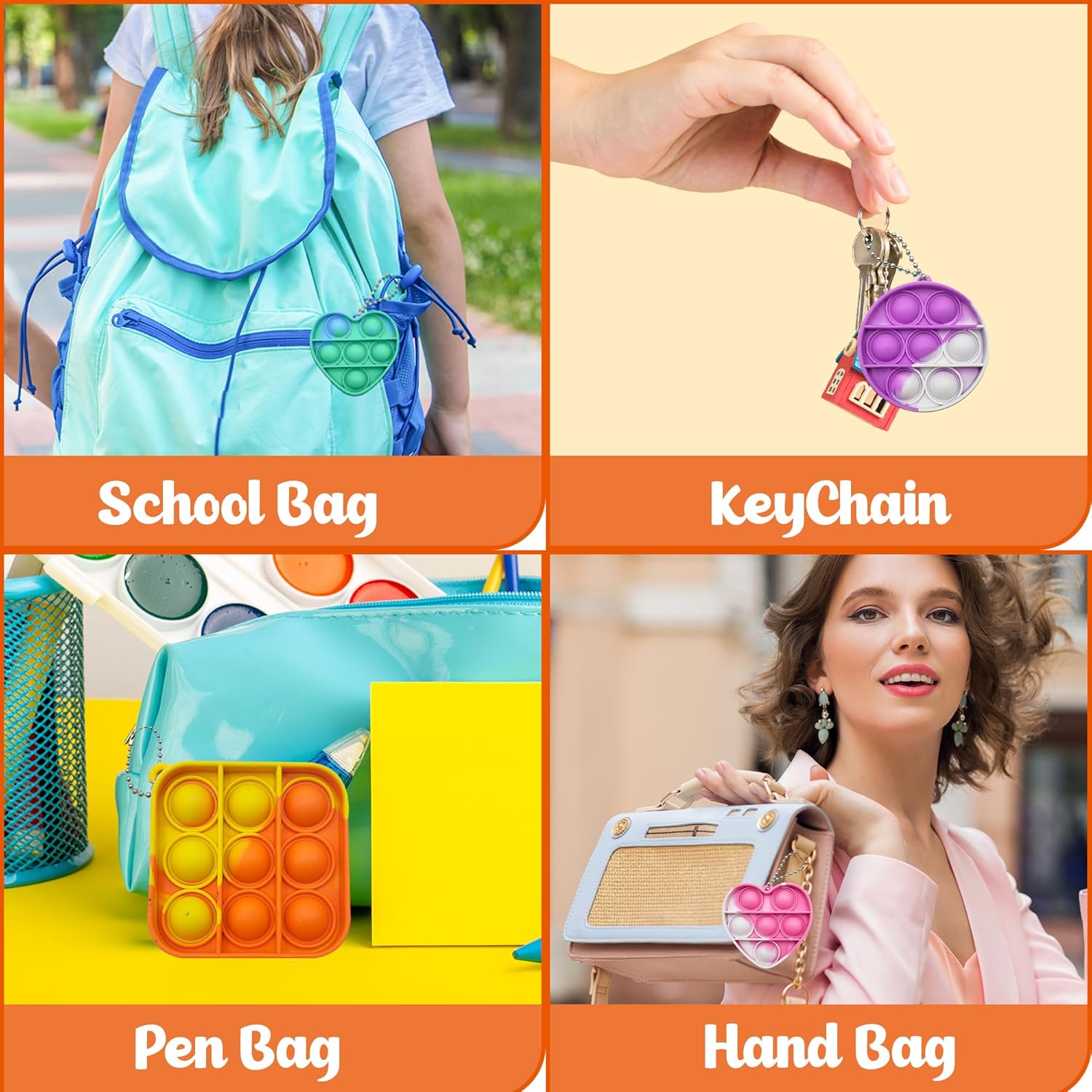 Shapes Pop Fidget Toys Set, Silicone Rainbow Popper Fidget Set for Children, Sensory Squeeze Toys Stress Reliever Tool for Kids Adult ADHD, Square, Heart and Circle Shapes, 4 of Each Shape