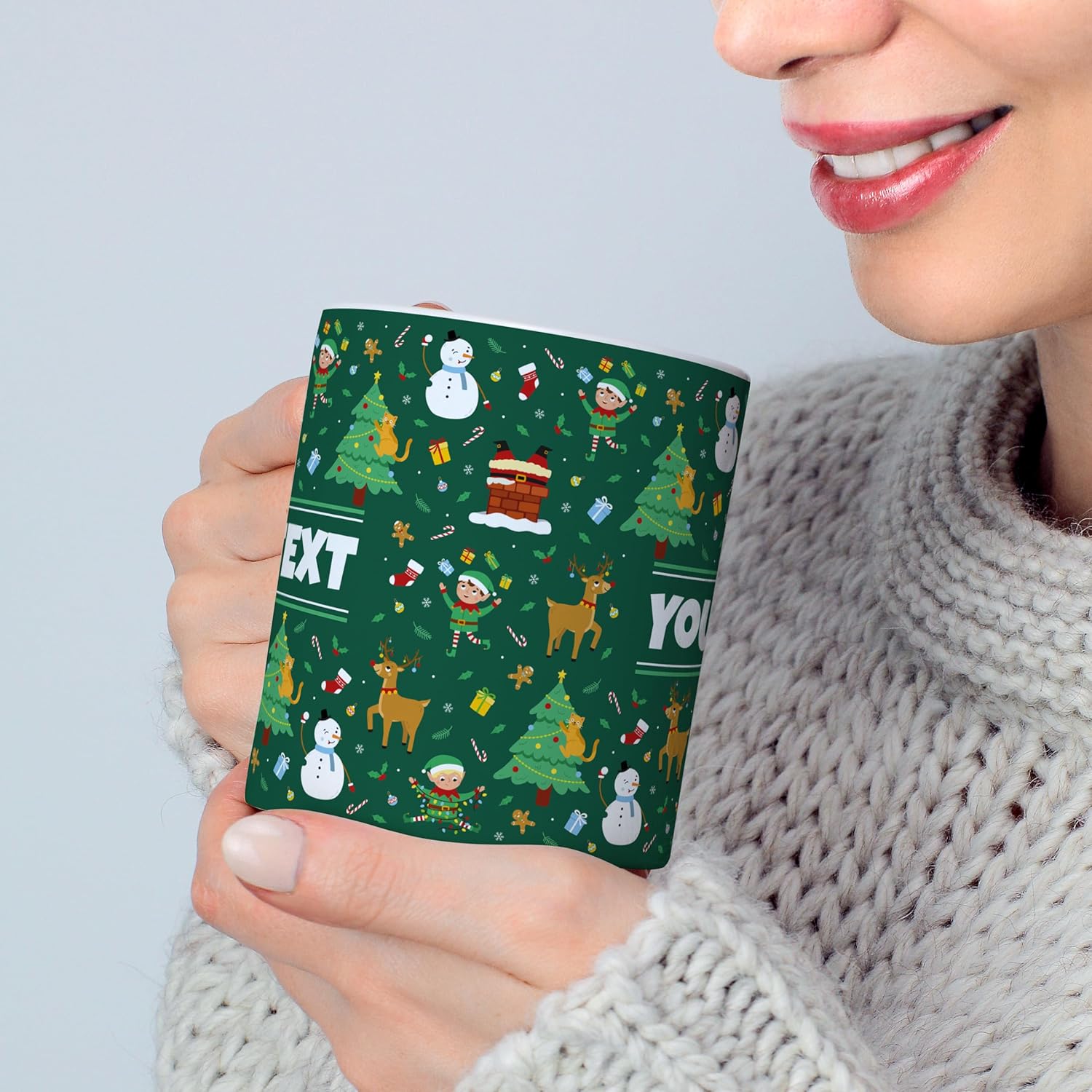 - Personalized just for them - Transform this festive ceramic mug into a special treasure with your child's name, making every sip a holiday adventure! The charming design features jolly snowmen, playful elves, decorated Christmas trees, and prancing reindeer that will delight any young holiday enthusiast. Watch their face light up when they see their name among the magical winter scenes!