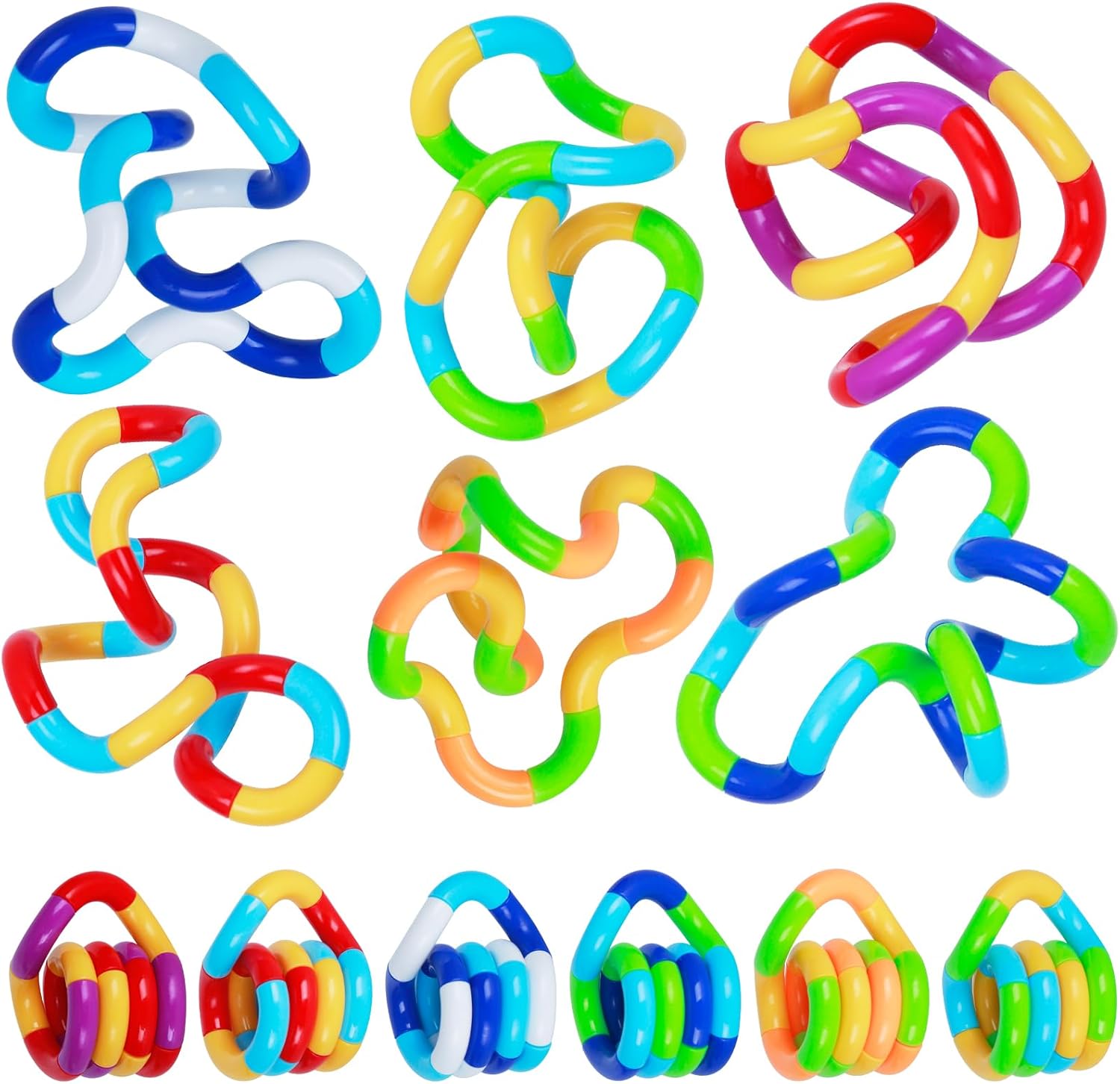 • THE BEST CLASSIC COLOR COMBINATION: Different from other products, we have studied a lot of data and choose 6 color combinations that are most popular with people for this package. Rich color combination allows everyone to combine more creative shapes. 12 pcs quiet fidgets toys for endless fun! You’ll love playing with each vibrantly colored squeeze and twist chain.