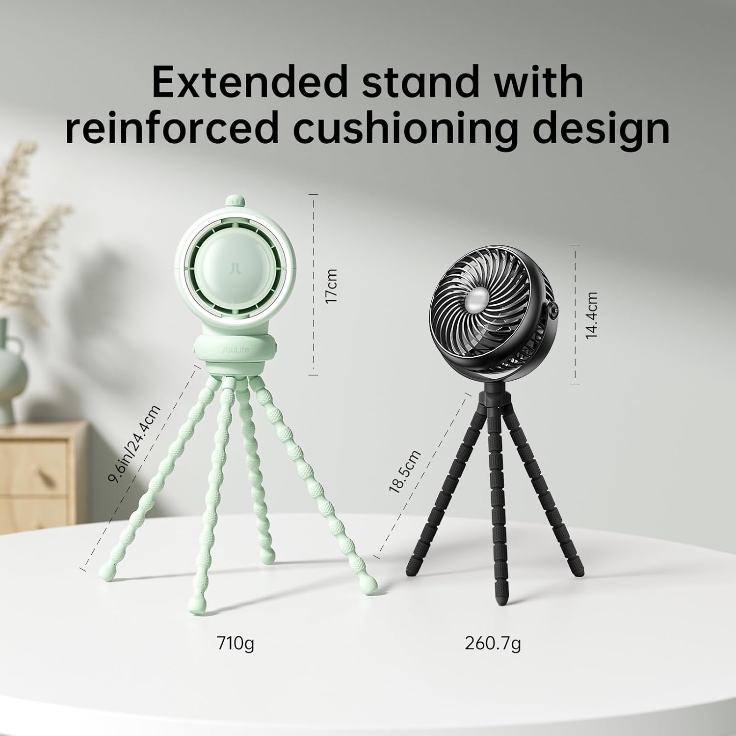 JISULIFE Stroller Fan Baby Large, Safe Bladeless for Crib, Desk, Portable Battery Rechargeable Cooling Fan with Air Turbo Tech, LED Display, Night Light, Food-Grade Gift for Mom/Dad/Friend - Green