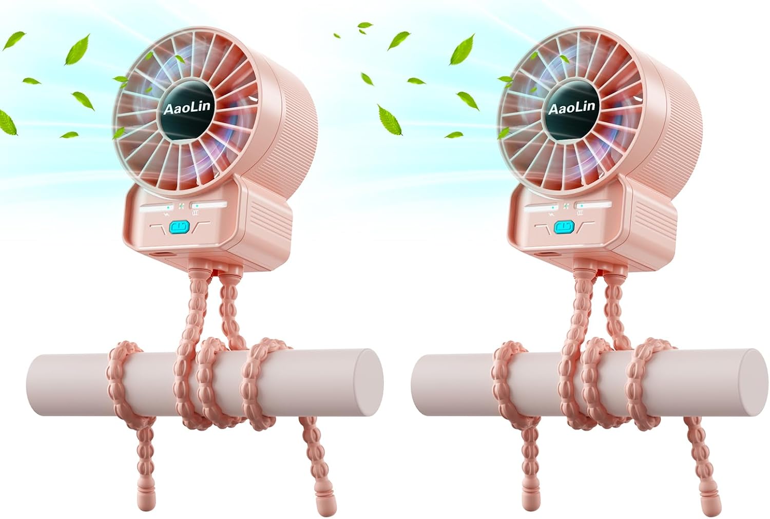 2 Pack Multifunctional Portable Stroller Fan 4 Speed 6600rpm High Speed Usb Rechargeable Personal Mini Handheld Fan Extended Tripod For Desktop Winding Kids Bed Treadmill Bike Golf Cart Outdoor Travel