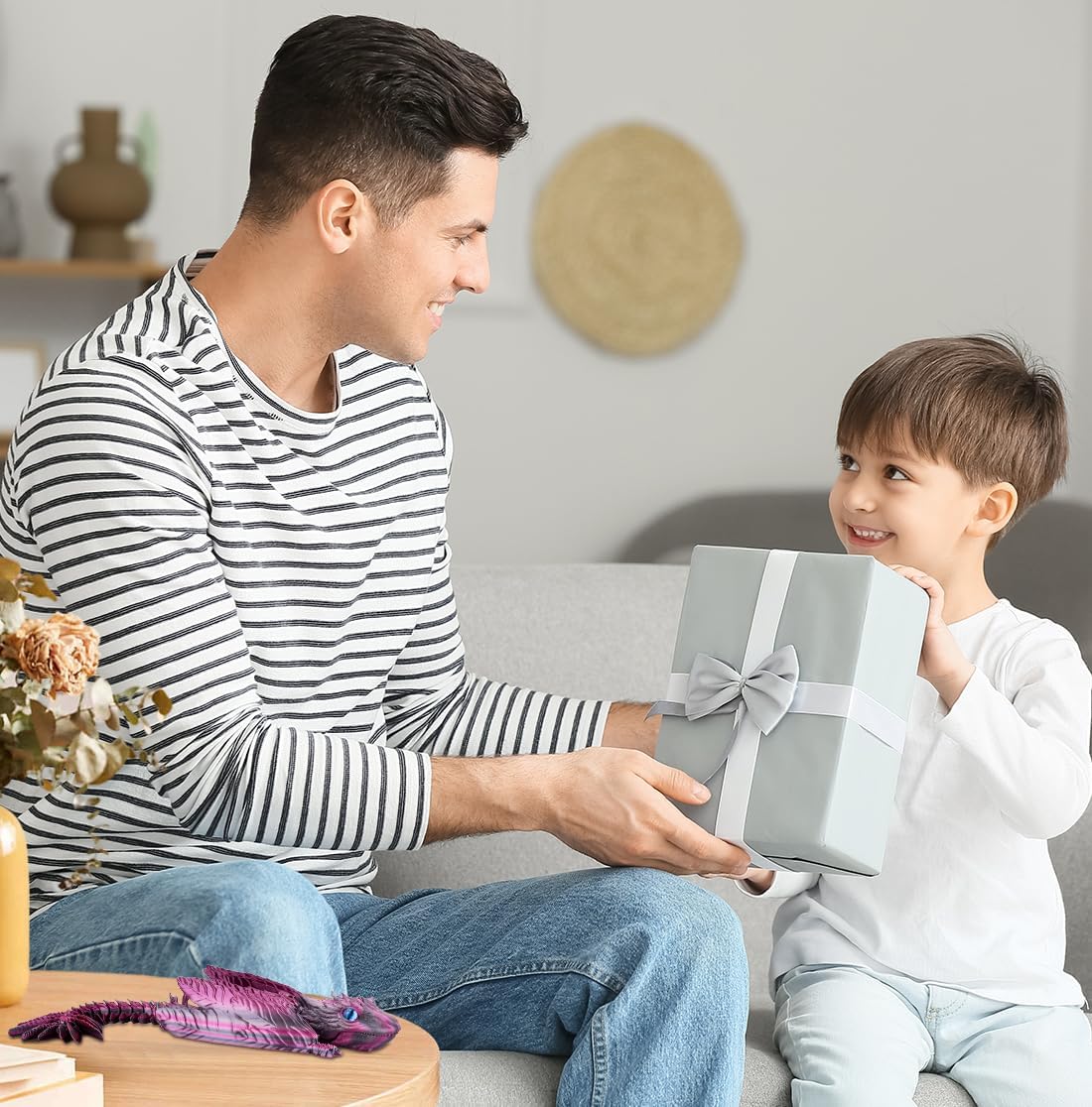 3D Printed Dragon with Wings 3D Printed Animals Articulated Dragon Fidget Dragon 3D Printed Toys Dragon Toy Desk Pets Home Office Decor (Purple)
