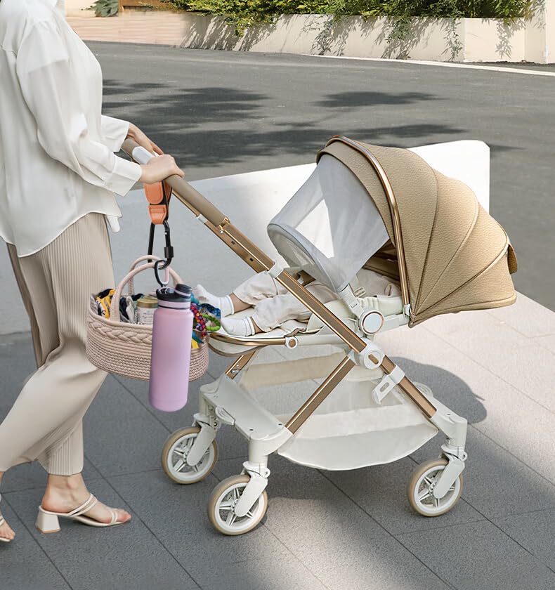 - 【High-quality Material】: The stroller attachment is made of durable high-performance leather fabrics and sturdy aluminum, not plastic, and holds up to 20 lbs(about 10 kg) per stroller hook carabiner. It is recommended to hang within 10 lbs to prevent the stroller from overturning.