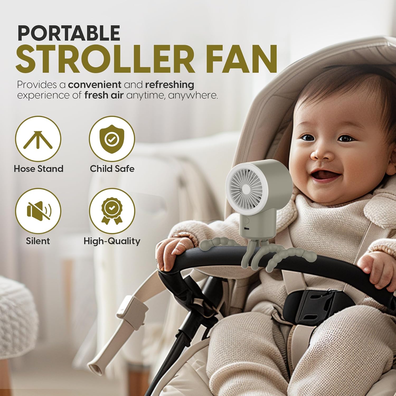 - ๐ฆ๐๐ฎ๐ ๐๐ผ๐ผ๐น ๐ผ๐ป ๐๐ต๐ฒ ๐๐ผ: This portable gray stroller fan is perfect for keeping your baby comfortable during walks, featuring a soft silicone flexible tripod that easily clips onto any stroller, crib, bed, car seat or treadmill