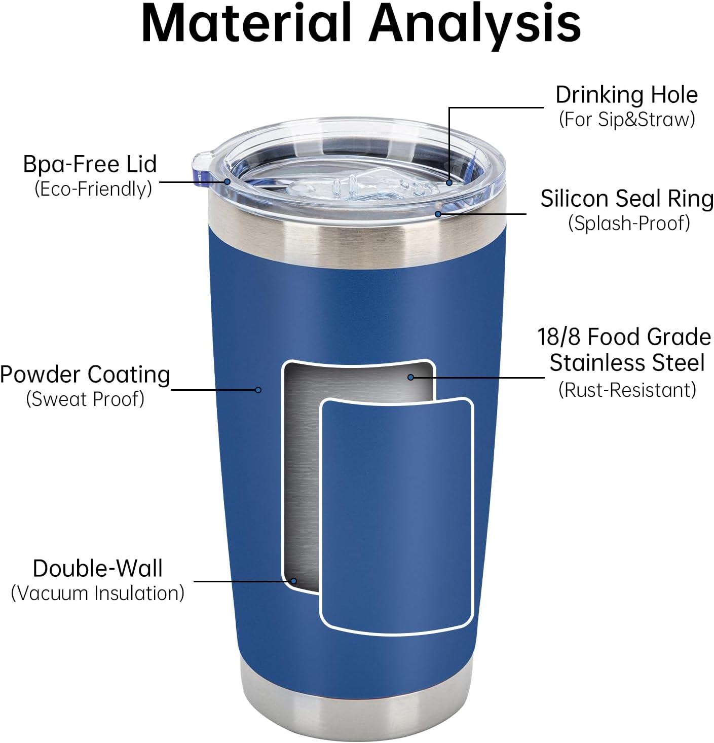 - 【Reusable slider lid】: The BPA free push lid is with a sippy slot that allows you to easily insert our straw or close the top, sliding smoothly without a feeling of stiff. The size of the lid fits perfectly onto the tumbler mug, ensure the 100% leakproof when you turn the tumbler upside down, also the enhanced lid is thick enough to prevents pop out when holding the piping hot drinks like tea, milk, boiled water, coffee inside the insulated cup for safty use.
