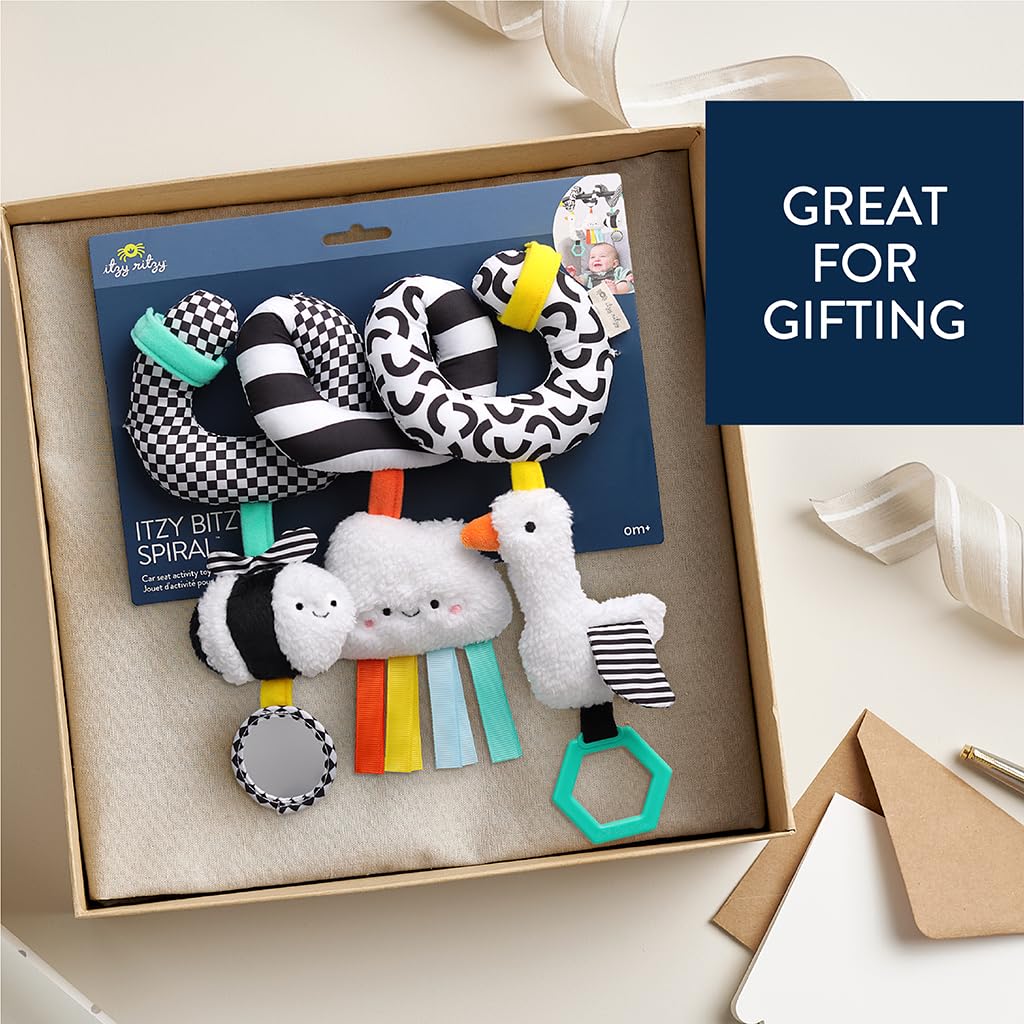 Itzy Ritzy Spiral Car Seat & Stroller Activity Toy - Stroller & Car Seat Toys for Ages 0 Months and Up - Hanging Toys Include Dangling Ring, Mirror and Textured Ribbons (High Contrast)