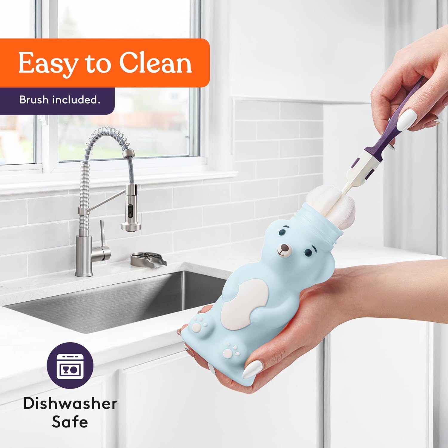 - Heavy-Duty BPA Free Silicone – Special Supplies silicone bear bottles are crafted with premium food-grade safe materials which makes them perfect for water, juice, milk, or other favorite beverages. Dish washer safe, but we recommend hand washing for long-term use.