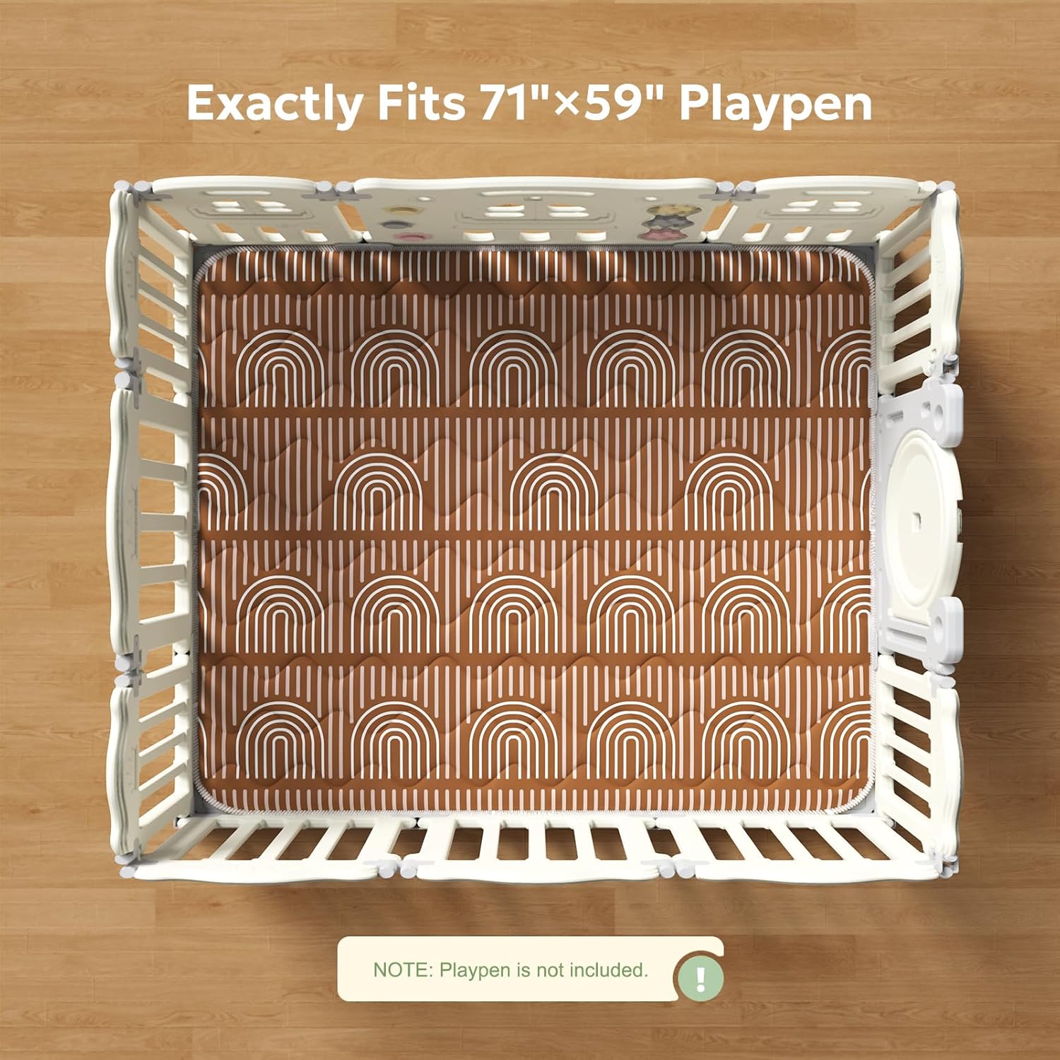 Soft Thicker Baby Mat for Floor 71"x59", Extra Large Baby Play Mat, Non-Slip Playpen Mat, Easy to Clean & Portable Playmat, Crawling Mat for Babies Toddlers, Activity Mat, Rainbow, Brown
