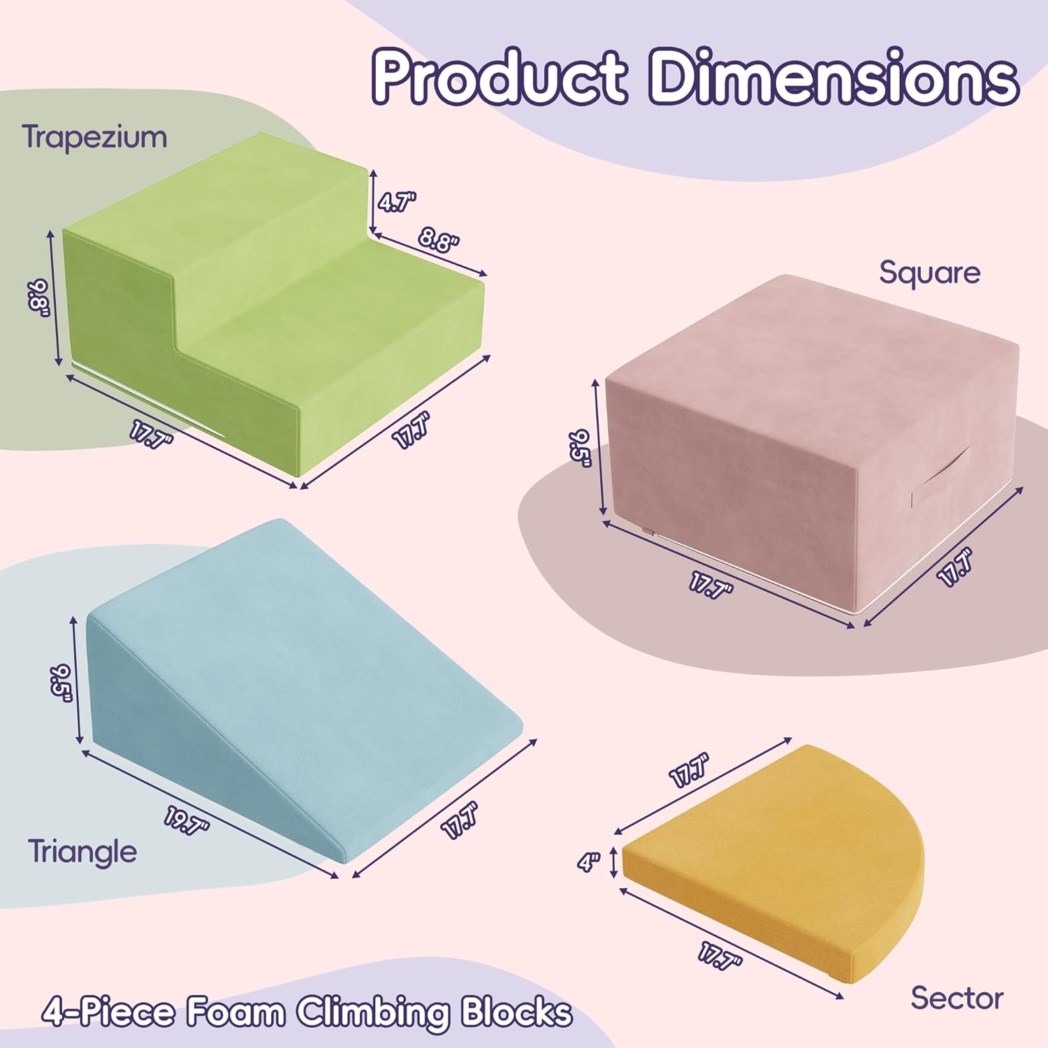 4 Piece Foam Climbing Blocks for Toddlers, Baby Climbing Gym with Ultra High Density Foam for Crawling and Sliding, Indoor Soft Play Set for Infant, Babies & Kids - Multicolor (Multicolor A, 4-Piece)