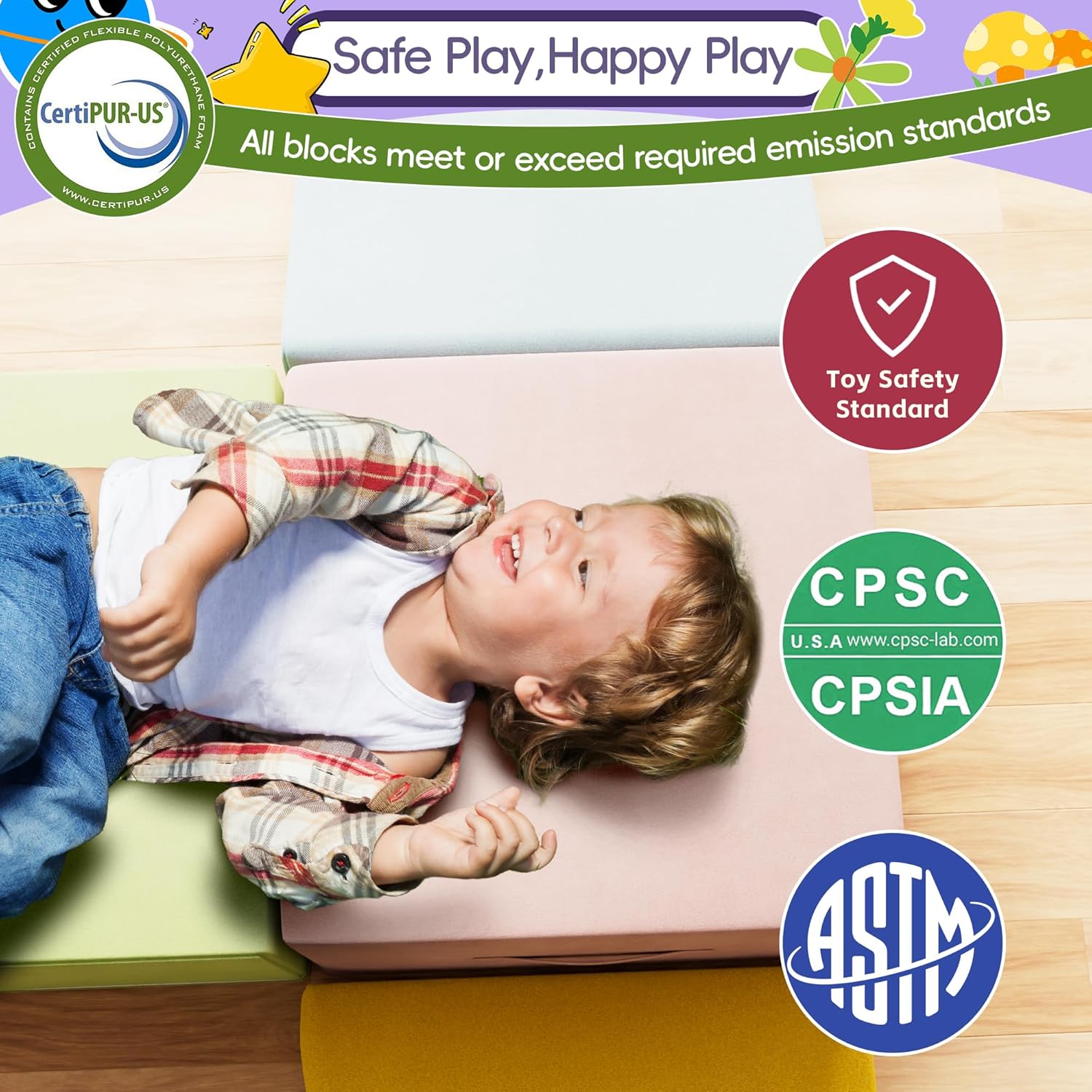 - Safe and Guaranteed: The kids climbing blocks are CPSIA & CPC certified, non-toxic, and tasteless fabric with ASTM approved. Each block is designed with hidden zippers to prevent scratches on delicate skin, and the structure is soft with no sharp edges, reducing the risk of bumps and bruises.