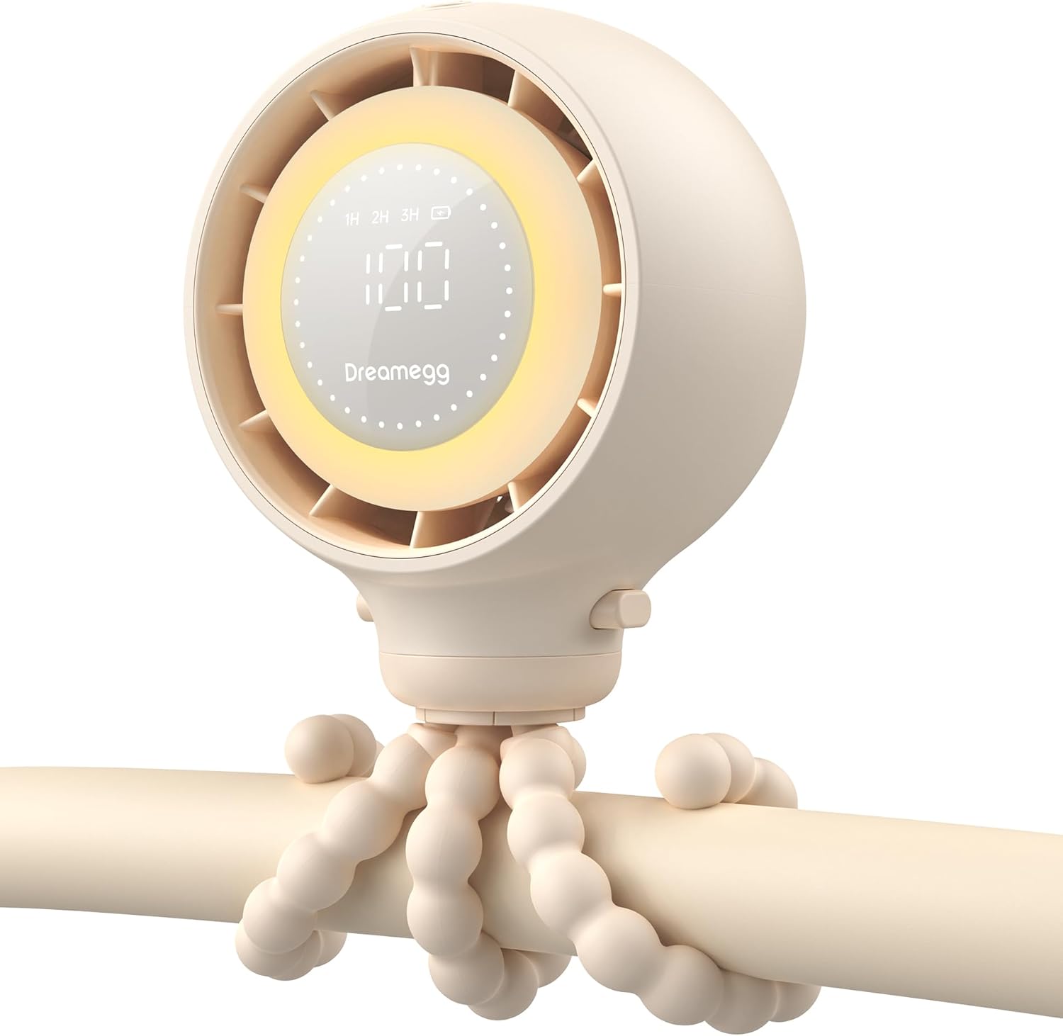 Dreamegg Portable Stroller Fan - 4000mAh Rechargeable Baby Stroller Fan With LED Display, Night Light, Hidden Blade, Detachable 4 Speed 360°Rotate, Handheld Cooling for Crib,Travel, Car Seat, Bedroom