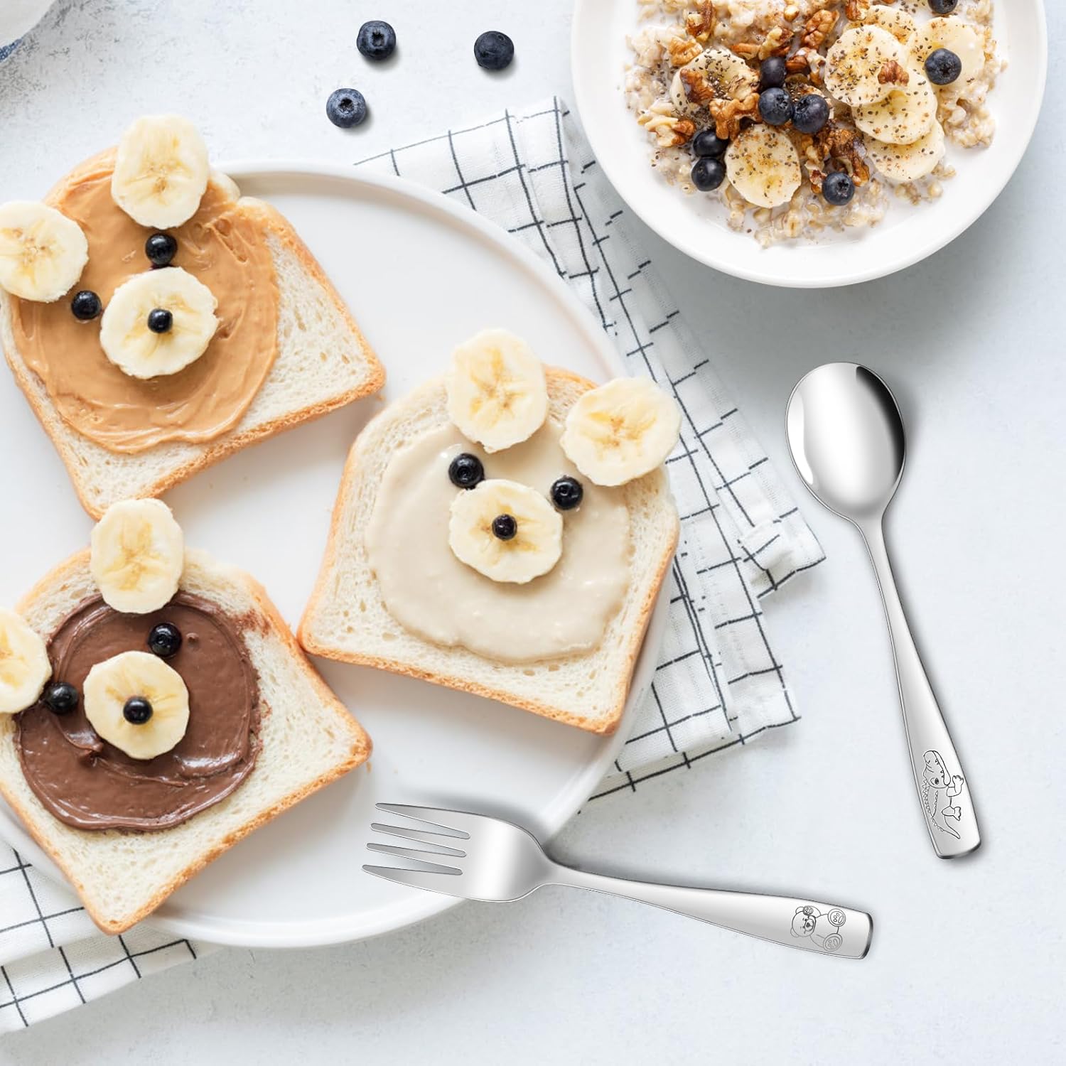 - CUTE & STURDY TODDLER SILVERWARE SET: This children's cutlery set contains 7 cartoon crocodile children's spoons and 7 cartoon bear children's forks. Enough for daily use and replacement, perfect for little people, great for kids lunches and various meals of toddlers, and built to last.
