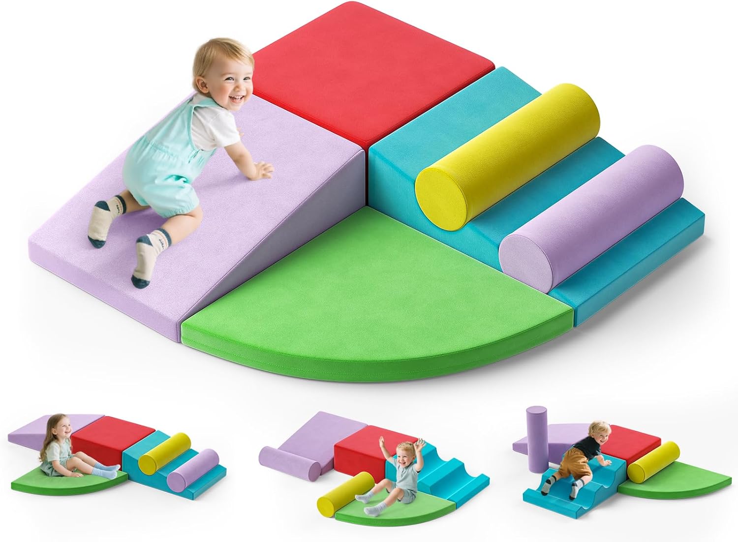 • 🌈 "Soft Play Set New upgrade" Lischwert climb and crawl activity play set incorporates with 6 foam climbing blocks, which are 1 square blocks, 1 climbing blocks, 1 slide, 1pads and 2 Cylindrical building blocks. They can be rearranged and set up in different ways, creating a colorful and engaging play experience.
