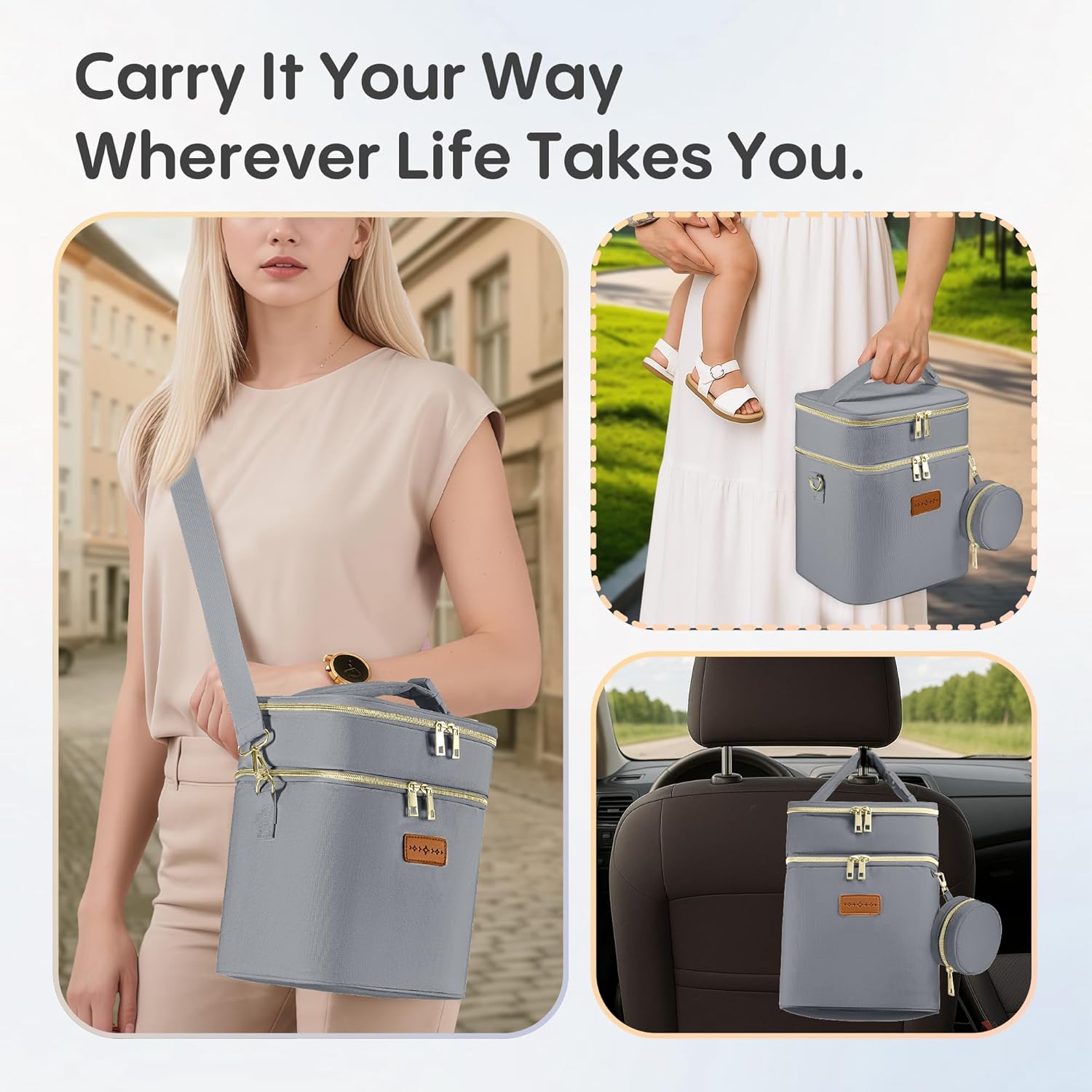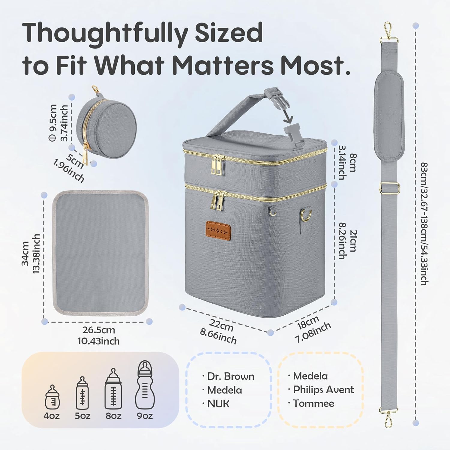 - 👜 Stylish & Travel-Ready Design Features premium fabric, smooth zippers, and detachable shoulder strap for hands-free carrying. Fits inside most diaper bags, luggage, or strollers.