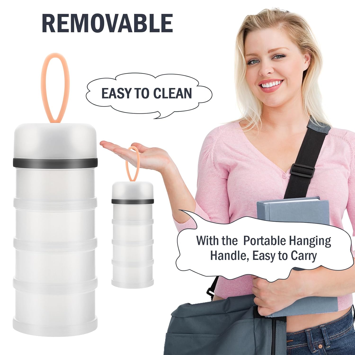 - Capacity - 4 layers design, you can put quantity of milk powder to be taken at one time in each layer box, you can carry 4 times of milk powder for baby outdoor need, very convenient and practical.