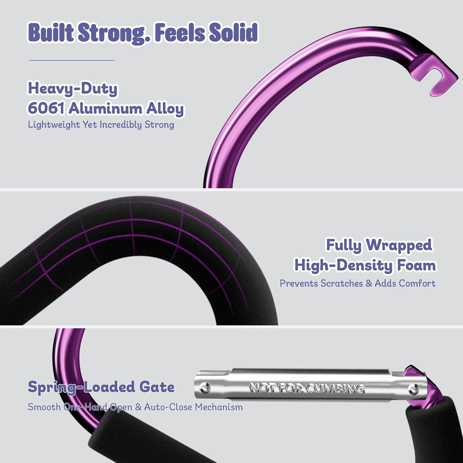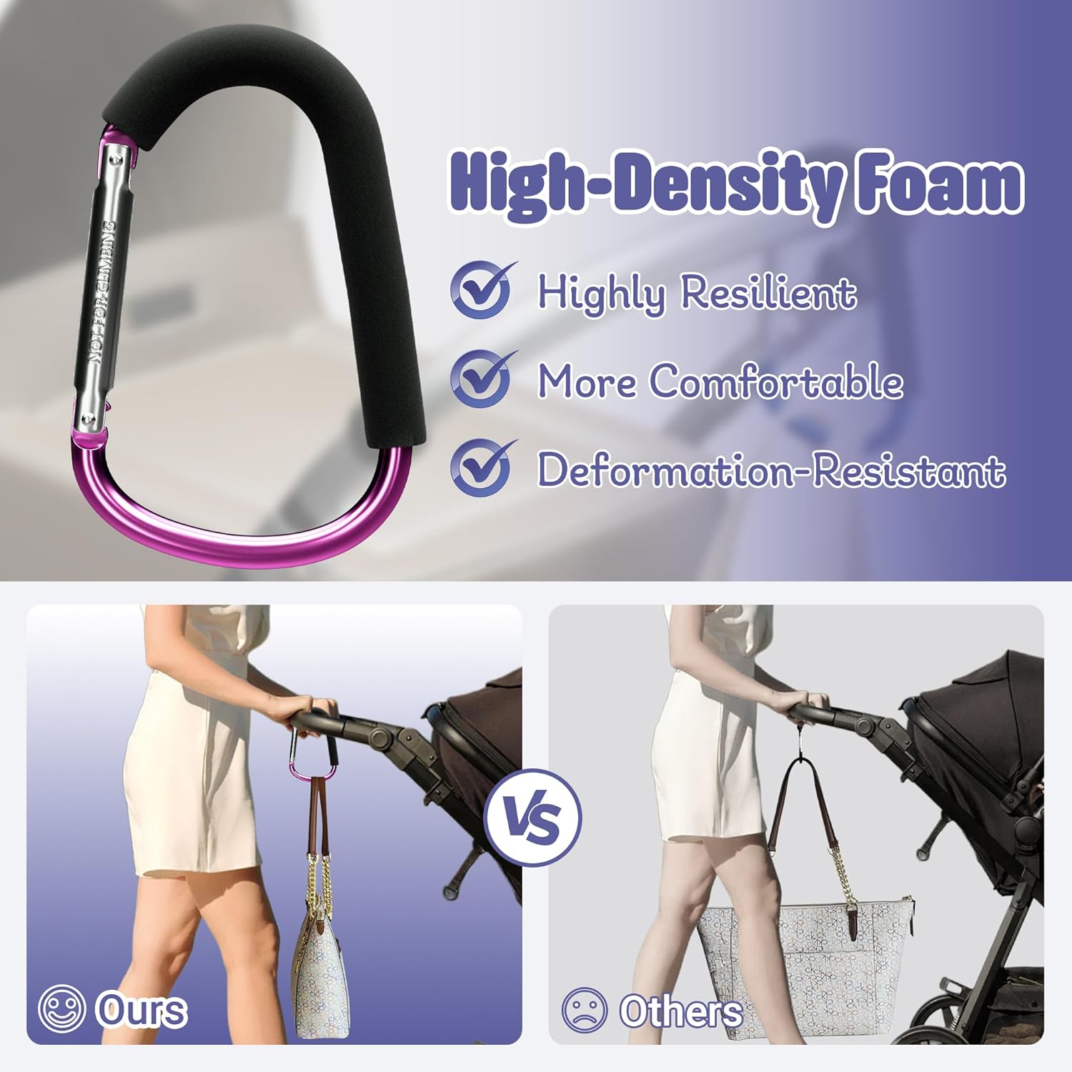 - Full Foam Handle Protects Bags: Featuring a soft foam handle, the stroller hook cushions diaper bags, purses, and backpacks, preventing scratches or damage from metal contact. A perfect stroller accessory to keep belongings safe during outings