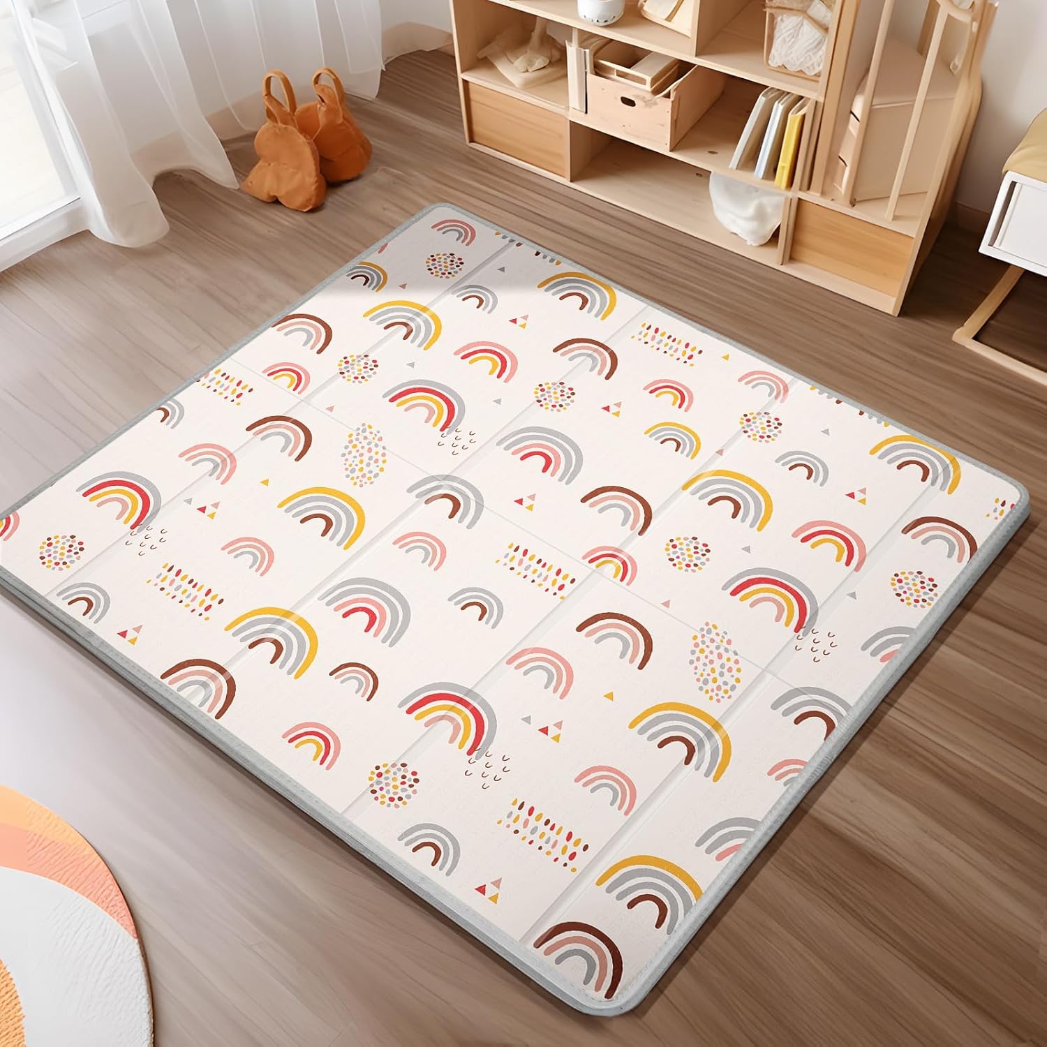 Foldable Baby Play Mat, PIGLOG 50x50 Playpen Mat, Waterproof Playmats for Babies and Toddlers Kids, Safe Foam Playmat for Tummy Time, Reversible Portable Baby Floor Mat for Infant, Colorful+Rain